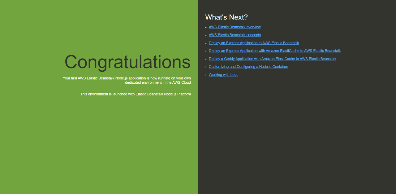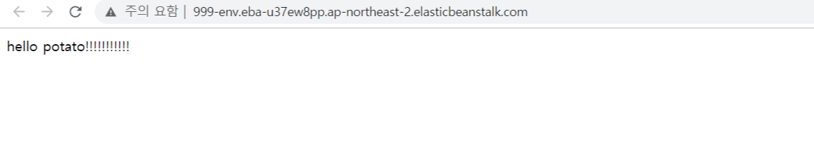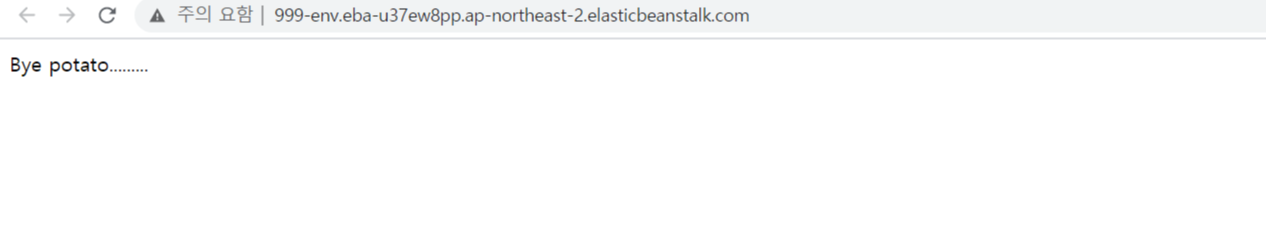 7. 수정한 app.js 파일의 문구가 등장했다. Elastic Beanstalk로 제대로 배포된 것을 확인할 수 있다.