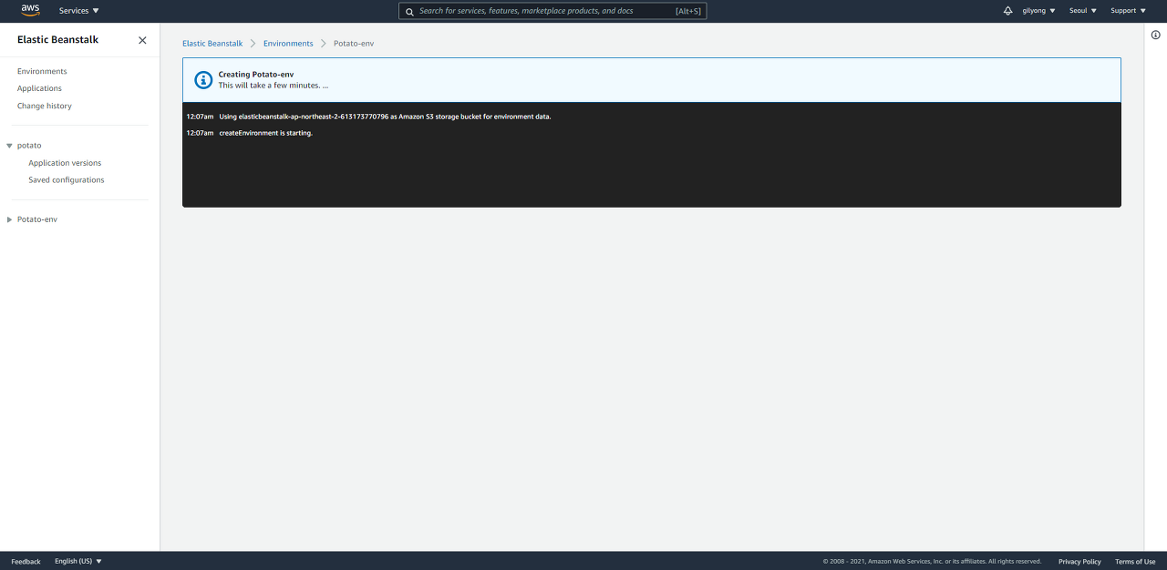 3. 애플리케이션이 생성되기까지 몇분의 시간이 걸리니 기다려주자