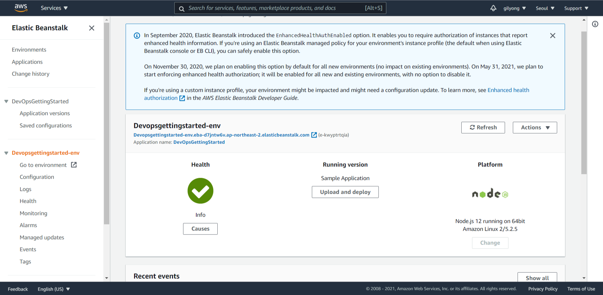 제대로 배포되었는지 Deploy된 Elastic beanstalk로 들어가서 URL 눌러주자