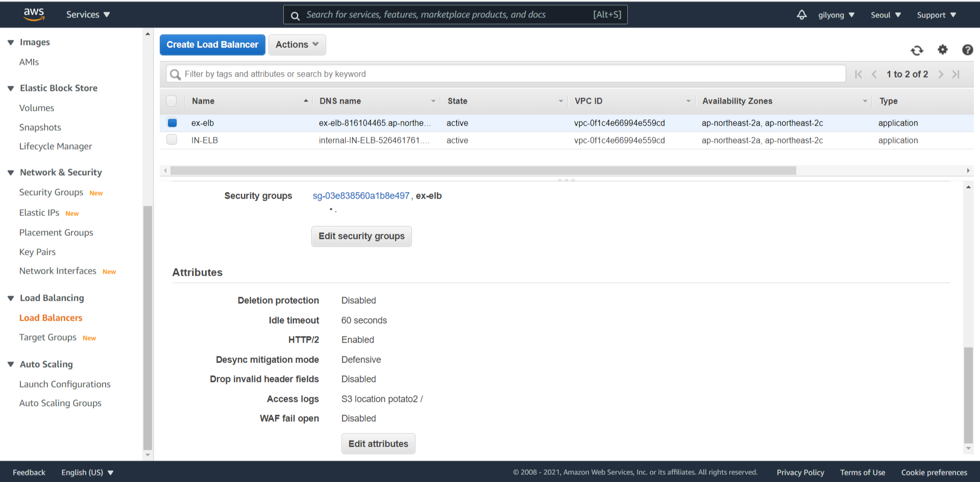 4. 버킷 정책이 생성되었으면 다음으로 ELB > Description > Attributes 에서 Access logs 를 활성화 시켜주도록 하자