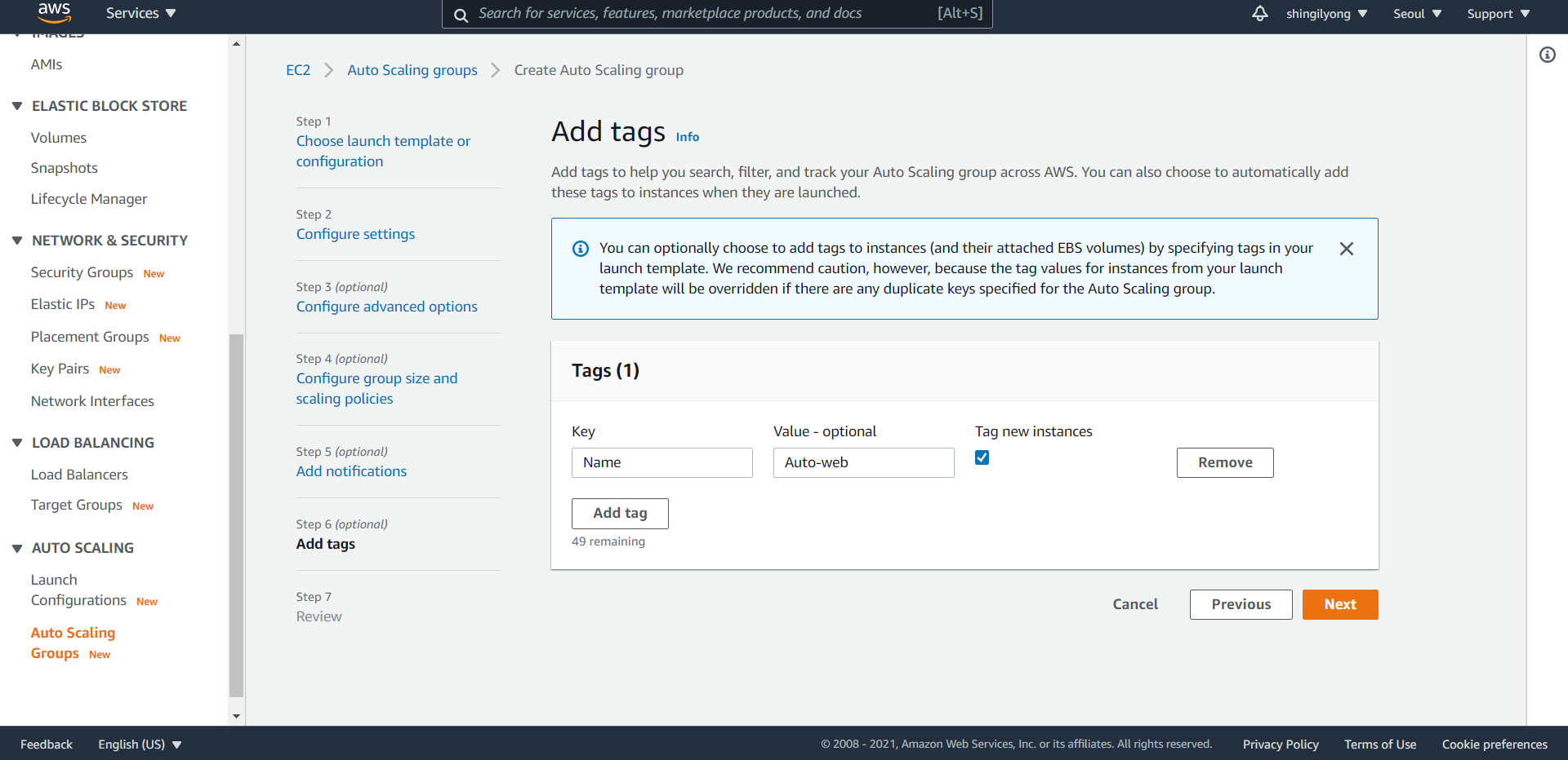 11. 태그를 통해 Auto Scalilng 으로 만들어지는 인스턴스의 이름을 정해주자