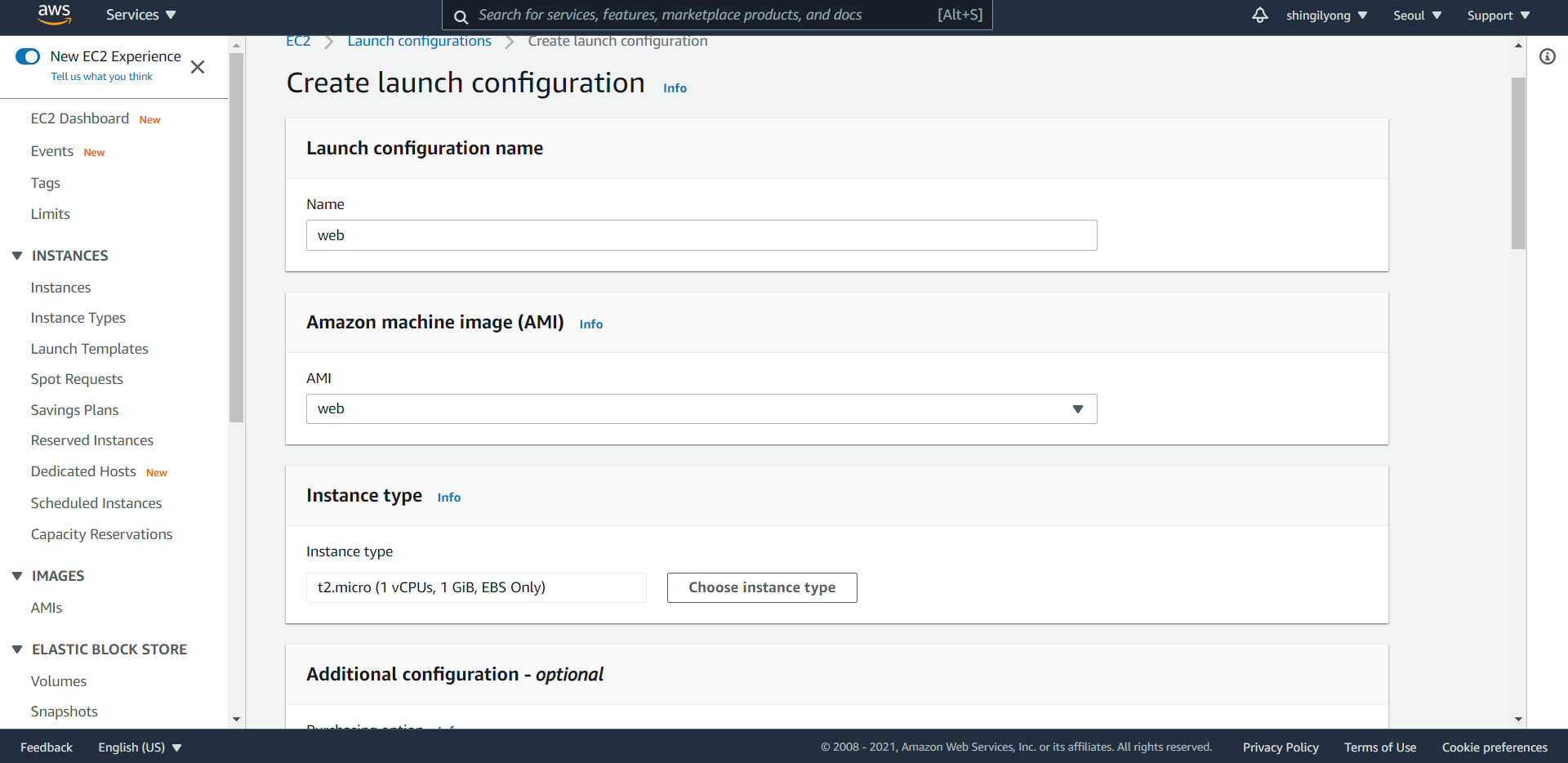 2. 이미지가 생성되었으면 Auto Scalilng 의 시작 구성을 만들어 준다. EC2 콘솔의 Auto Scalilng 항목에서 생성해주자