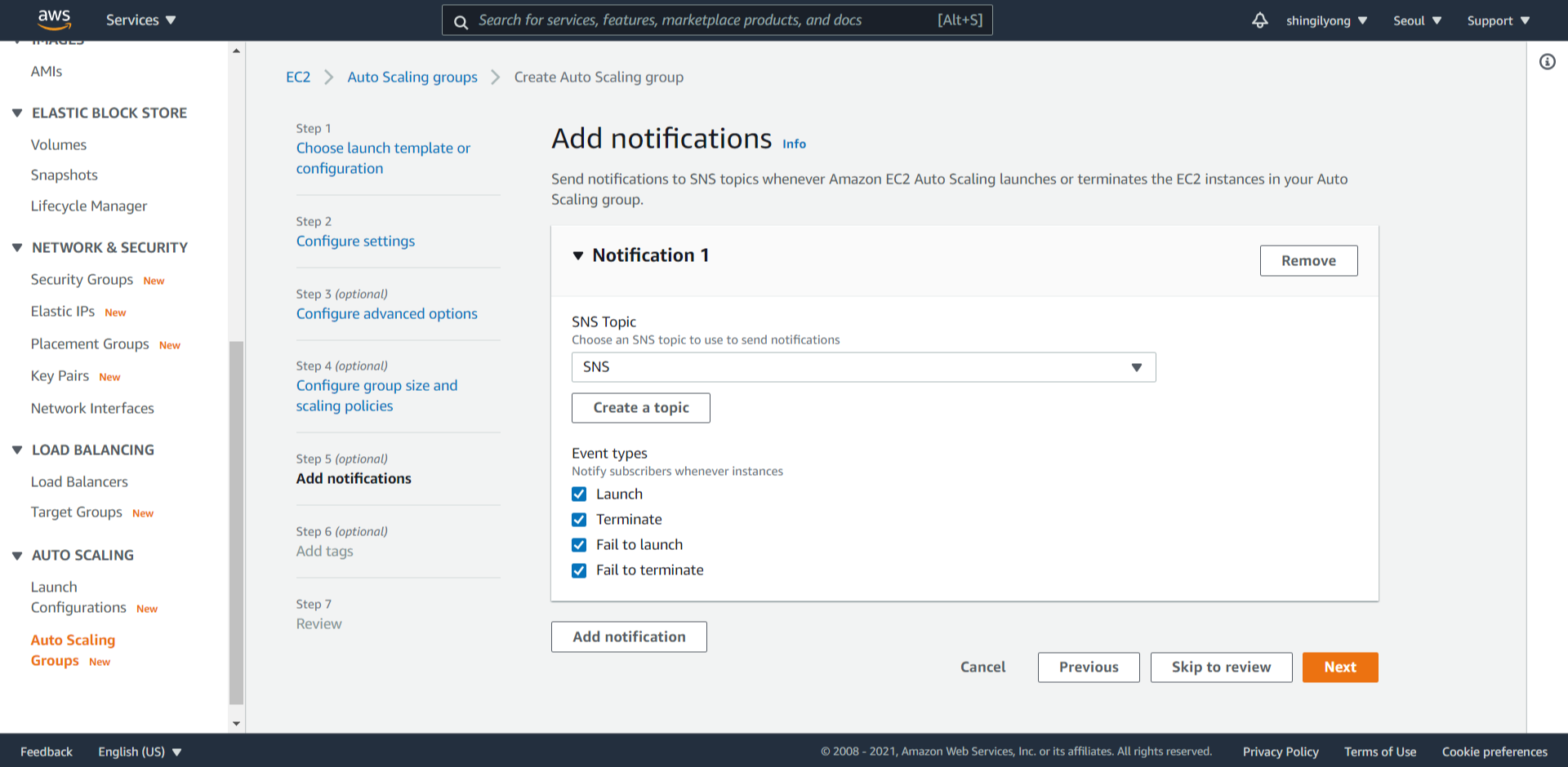 이번 실습은 Auto Scalilng Group을 사용하여 WEB,WAS의 인스턴스 CPU 사용량이 증가하거나, 감소될 때 자동으로 인스턴스를 생성하거나 삭제해보자. 또한 Auto Scalilng 이벤트가 발생할 때, AWS SNS를 통해 내 이메일로 알람을 보내보도록 하자