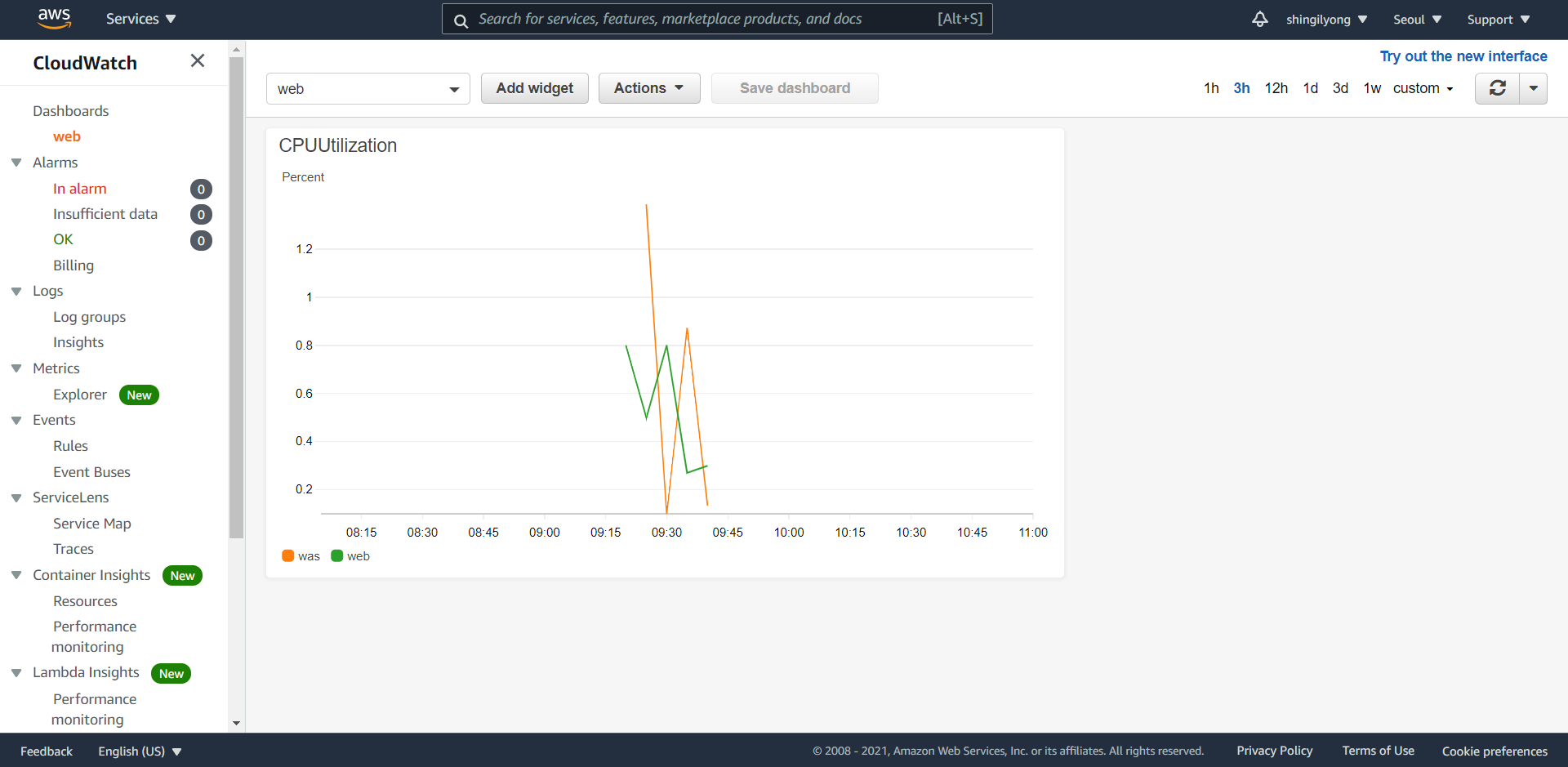 14. CloudWatch를 사용해 Auto Scalilng Group의 평균 CPU 사용량을 확인해 줄 수도 있다.