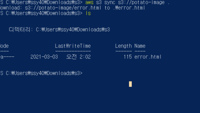 4. aws s3 sync s3://<버킷이름> <디렉터리>