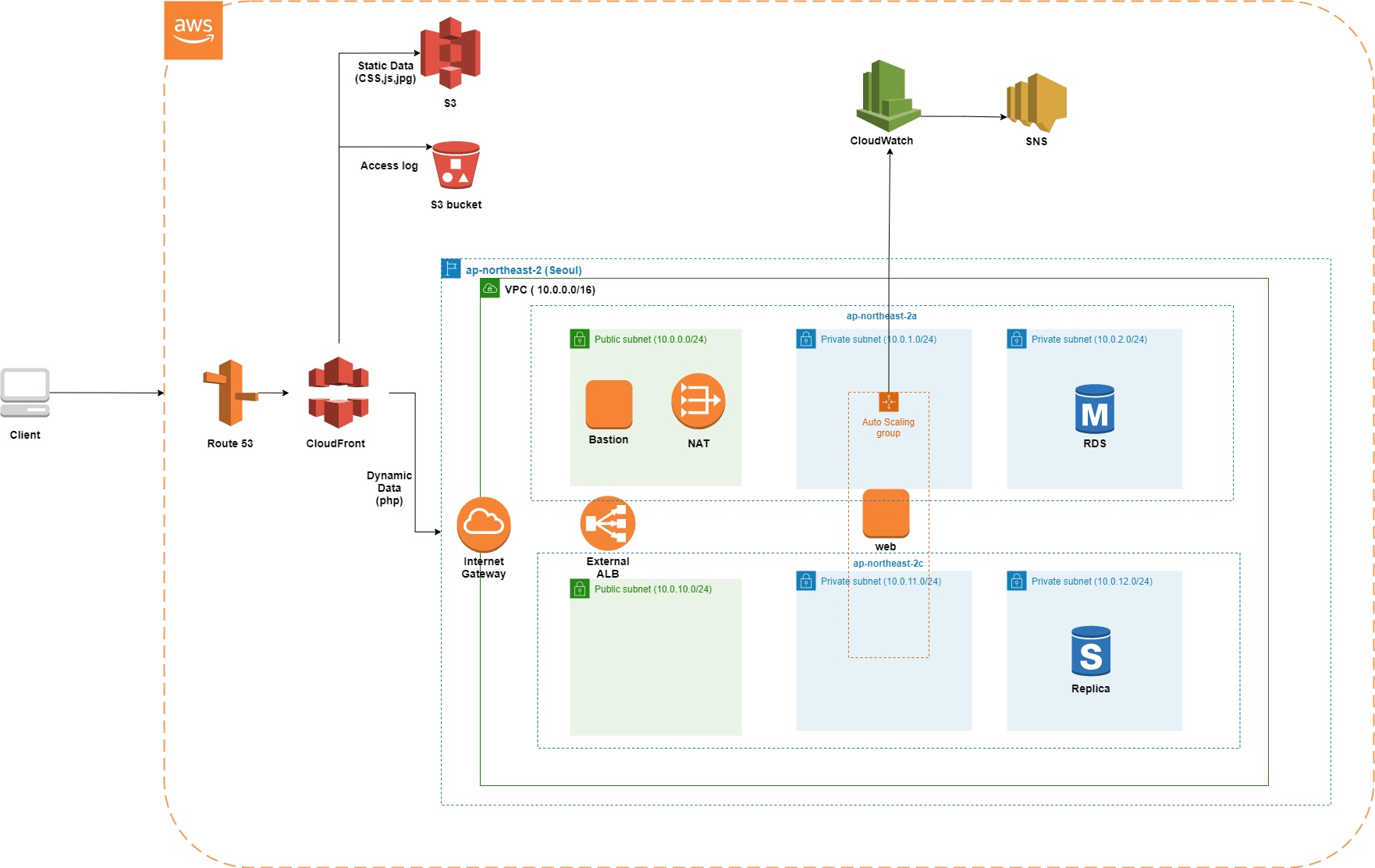 3. CloudFront를 통해서 CSS,JPG같은 정적데이터는 S3, PHP같은 동적데이터는 EC2를 대상으로 하는 ELB