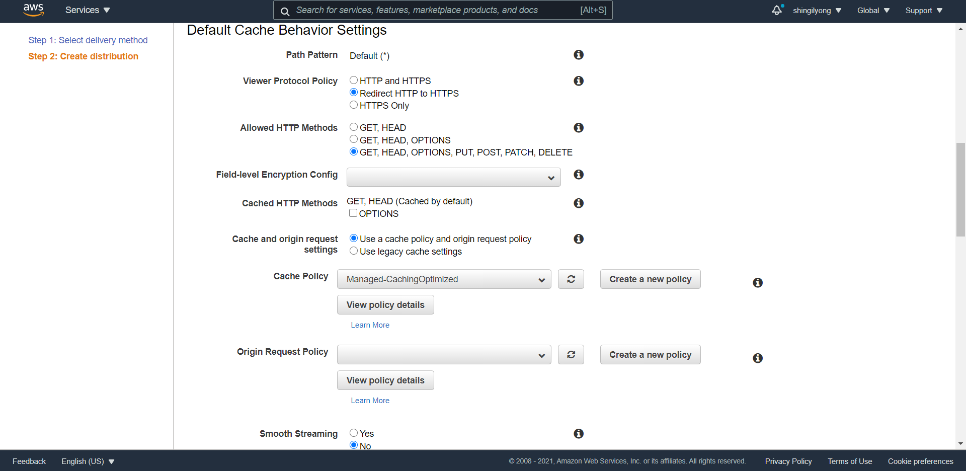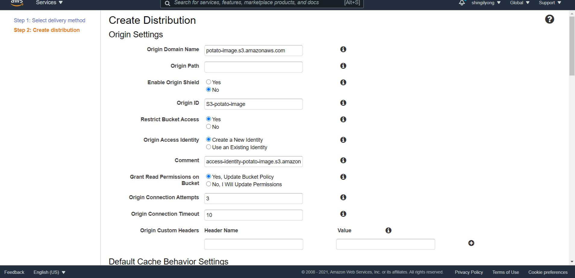 2. (CloudFront) - (S3) 로 정적데이터 처리만을 위한 웹