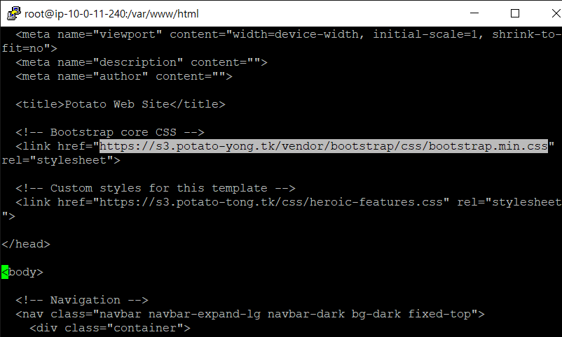 CSS,jpg,js 파일들의 주소는 S3 버킷에 업로드했던 주소를 가리키도록 한다.