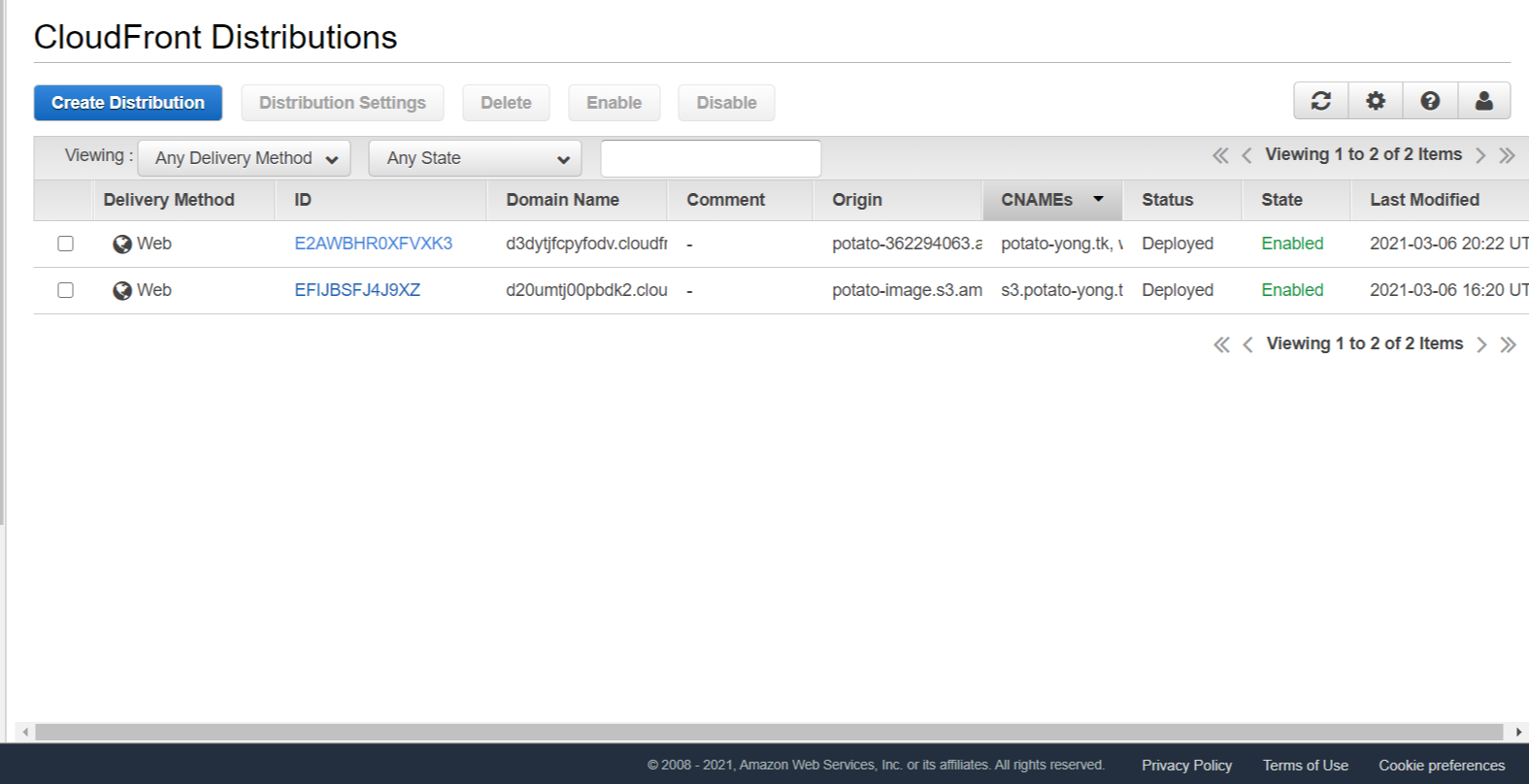 CloudFront는 S3용과 ELB용으로 두개 만들어준다.