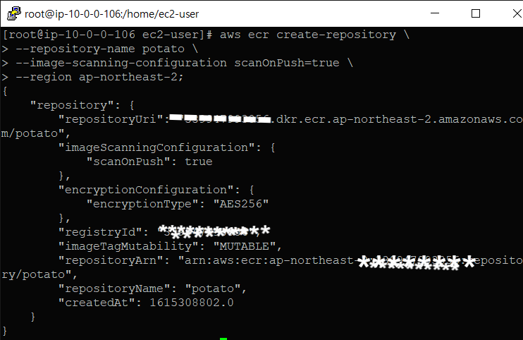 7.3 docker push aws_account_id.dkr.ecr.ap-northeast-2.amazonaws.com/potato:Yong